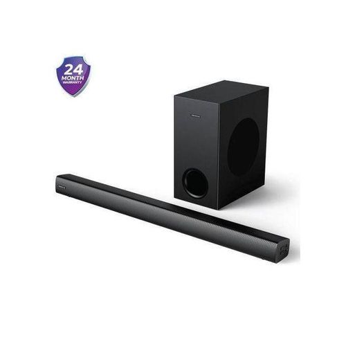 Watch movies and listen to music in style with the Vision Plus 2.1 CH Deep Bass soundbar. This system supports Bluetooth connectivity and comes with USB and audio inputs so you can listen to your favorite songs. Bring the cinema home with immersive and powerful sound.